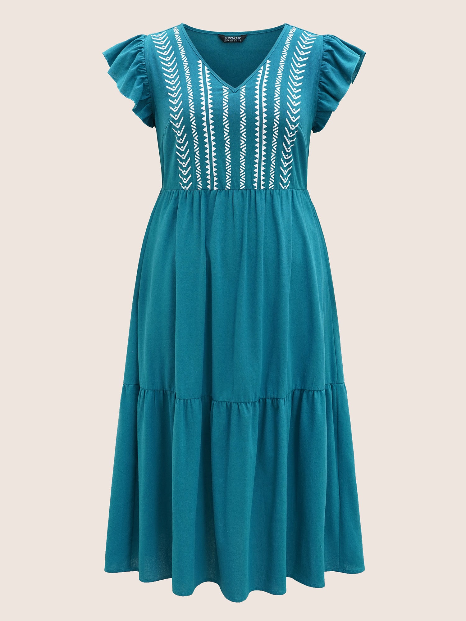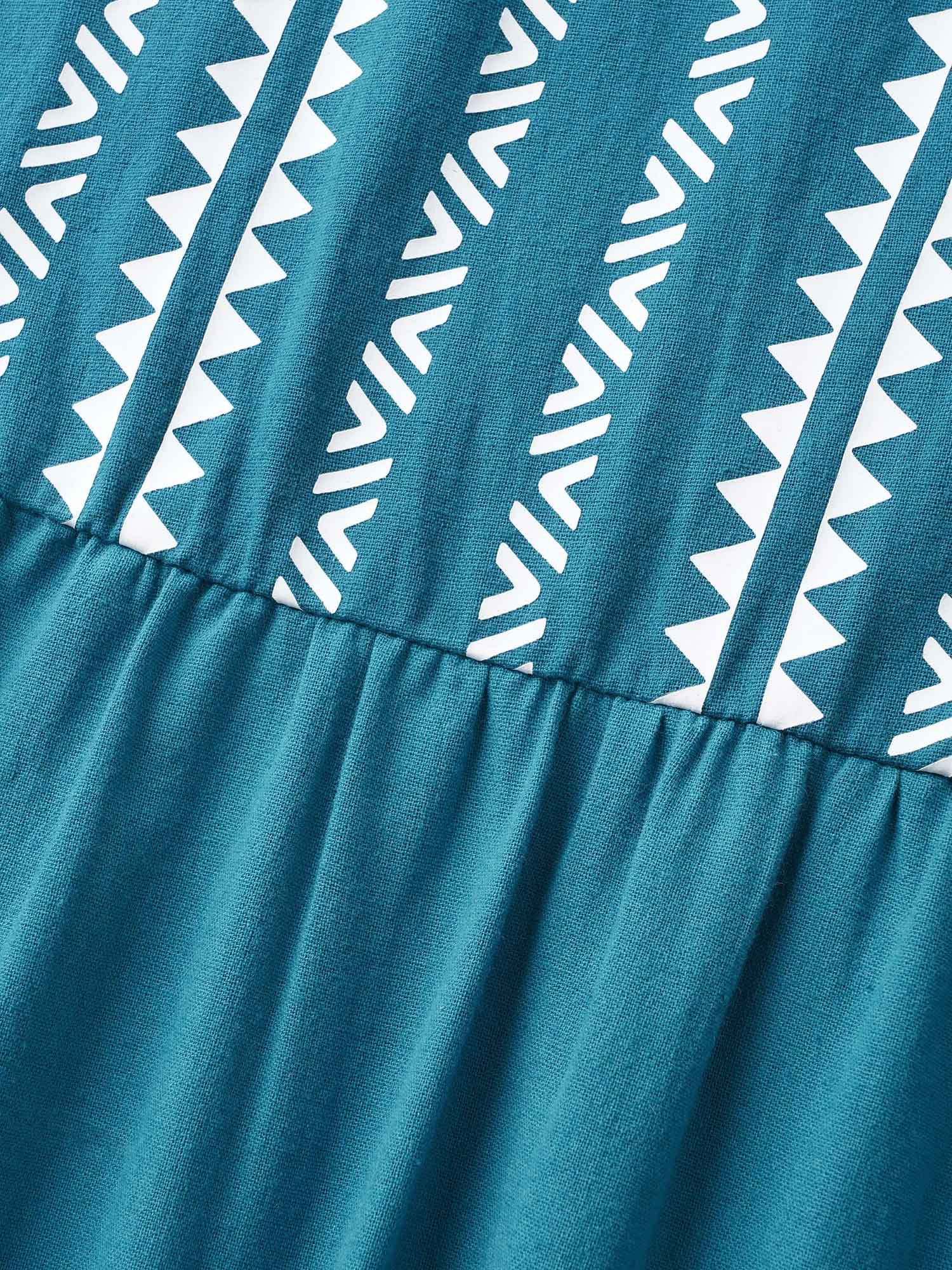 Bandana Geometric Ruffle Cap Sleeve Midi Dress