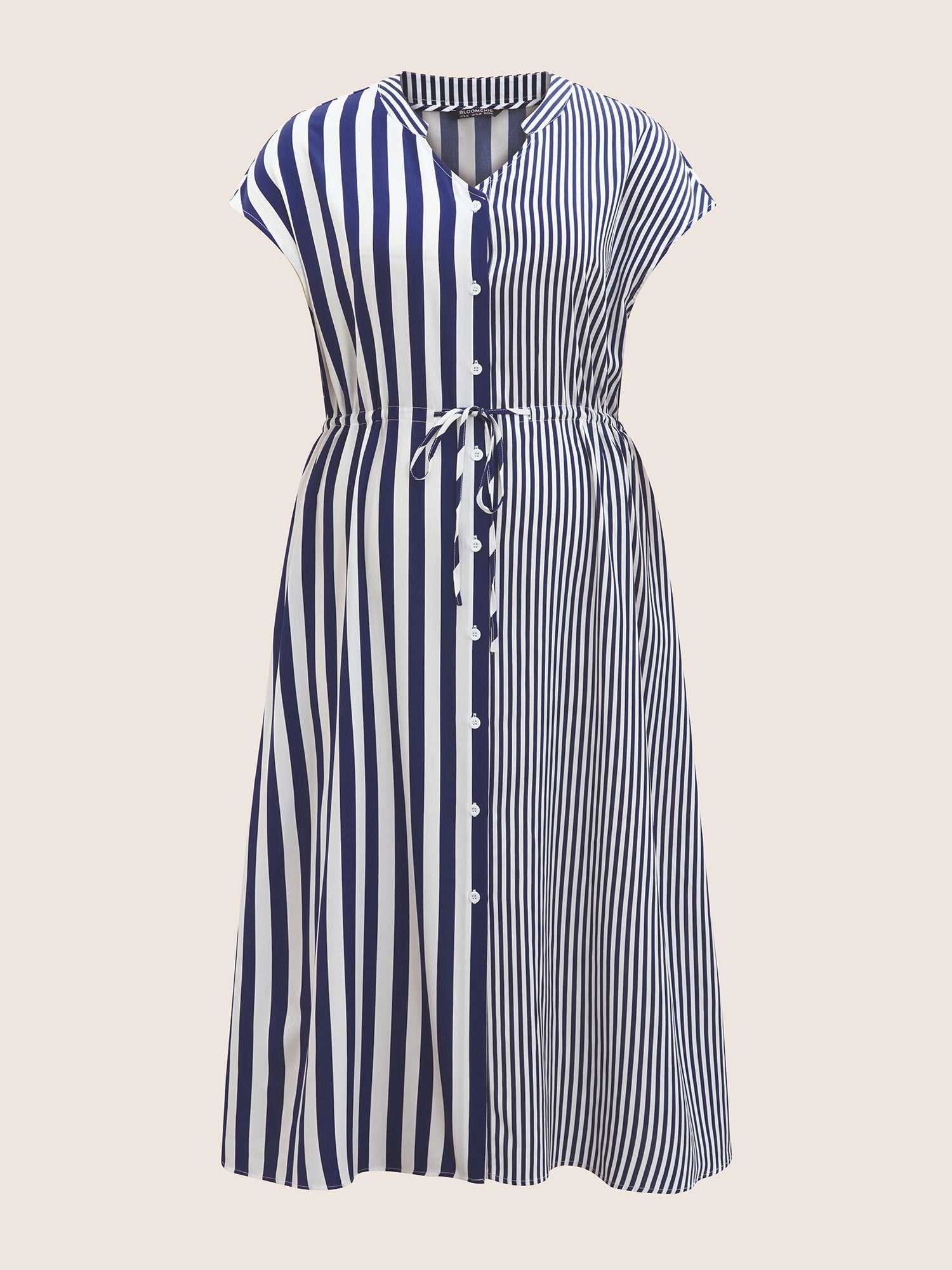 • Striped Patchwork Drawstring Dolman Sleeve Dress