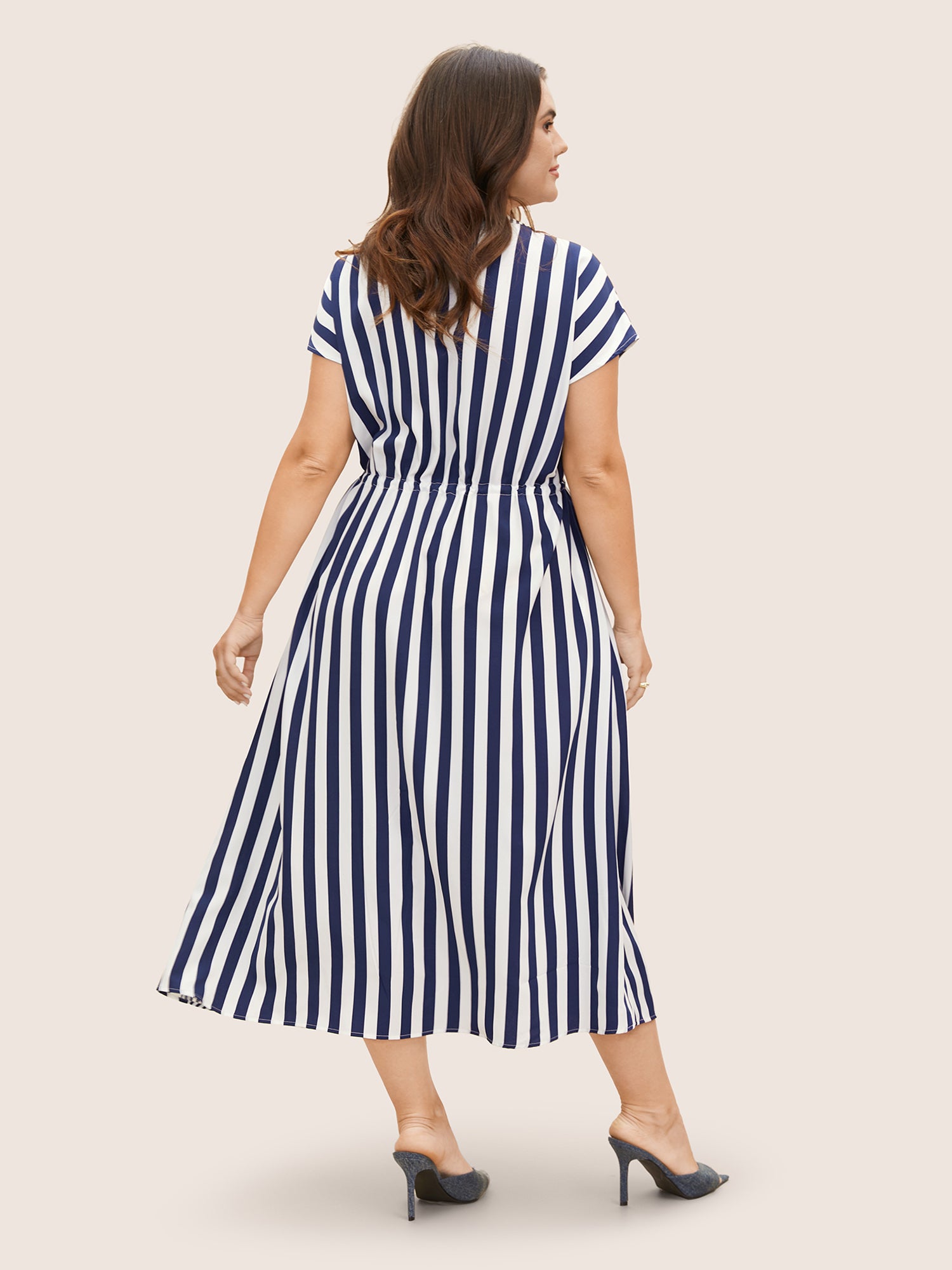 Striped Patchwork Drawstring Dolman Sleeve Dress