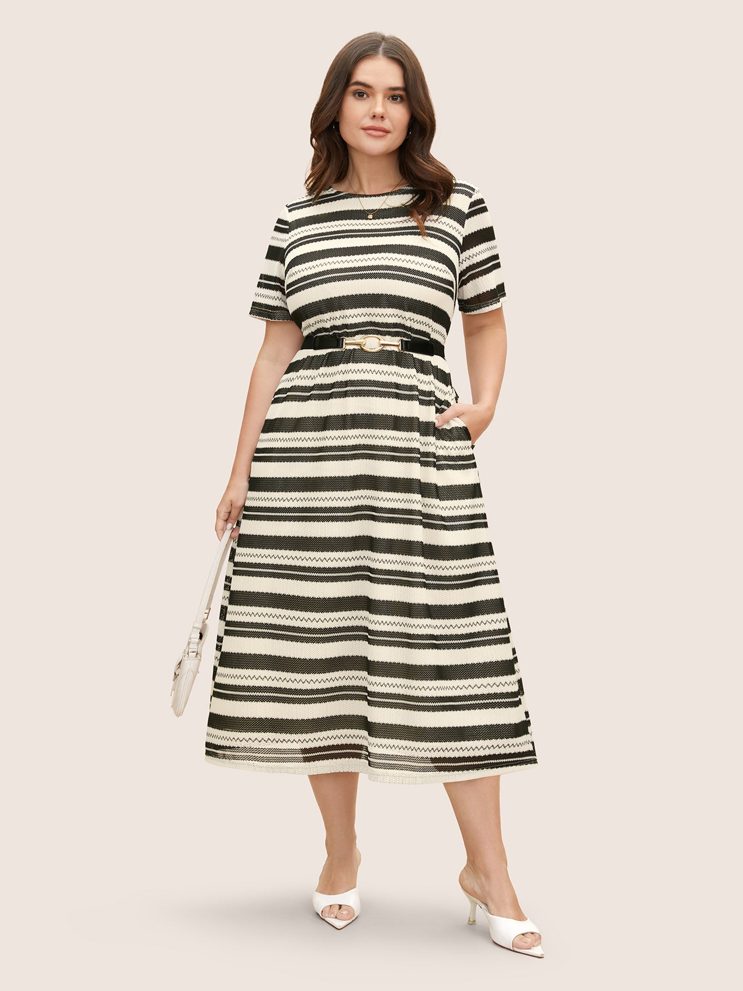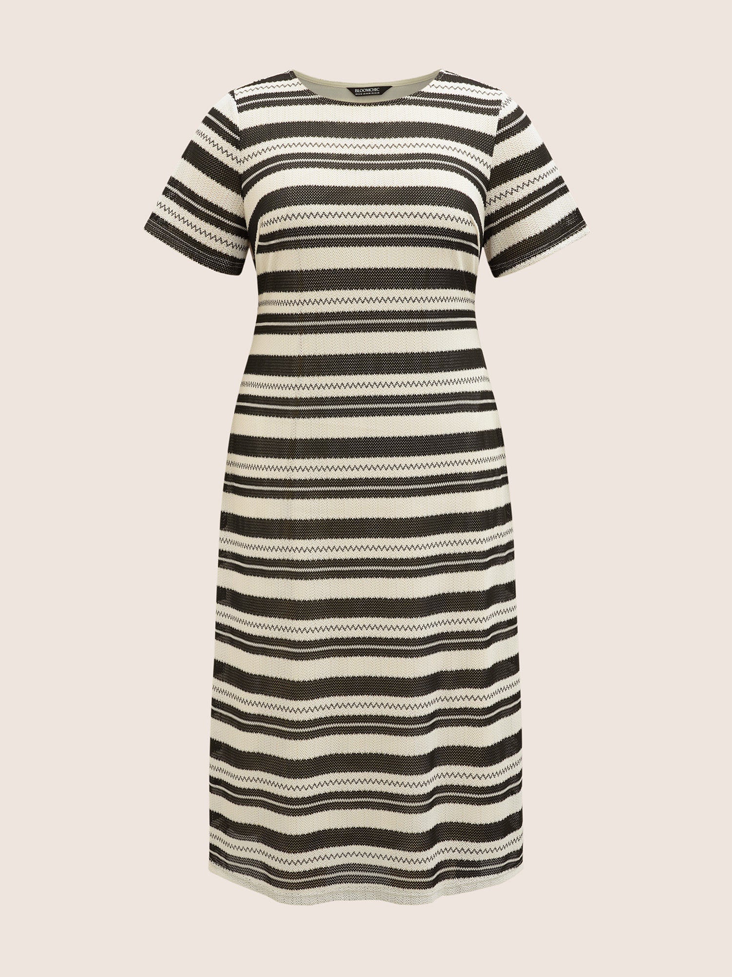 Striped Texture Crew Neck Midi Knit Dress