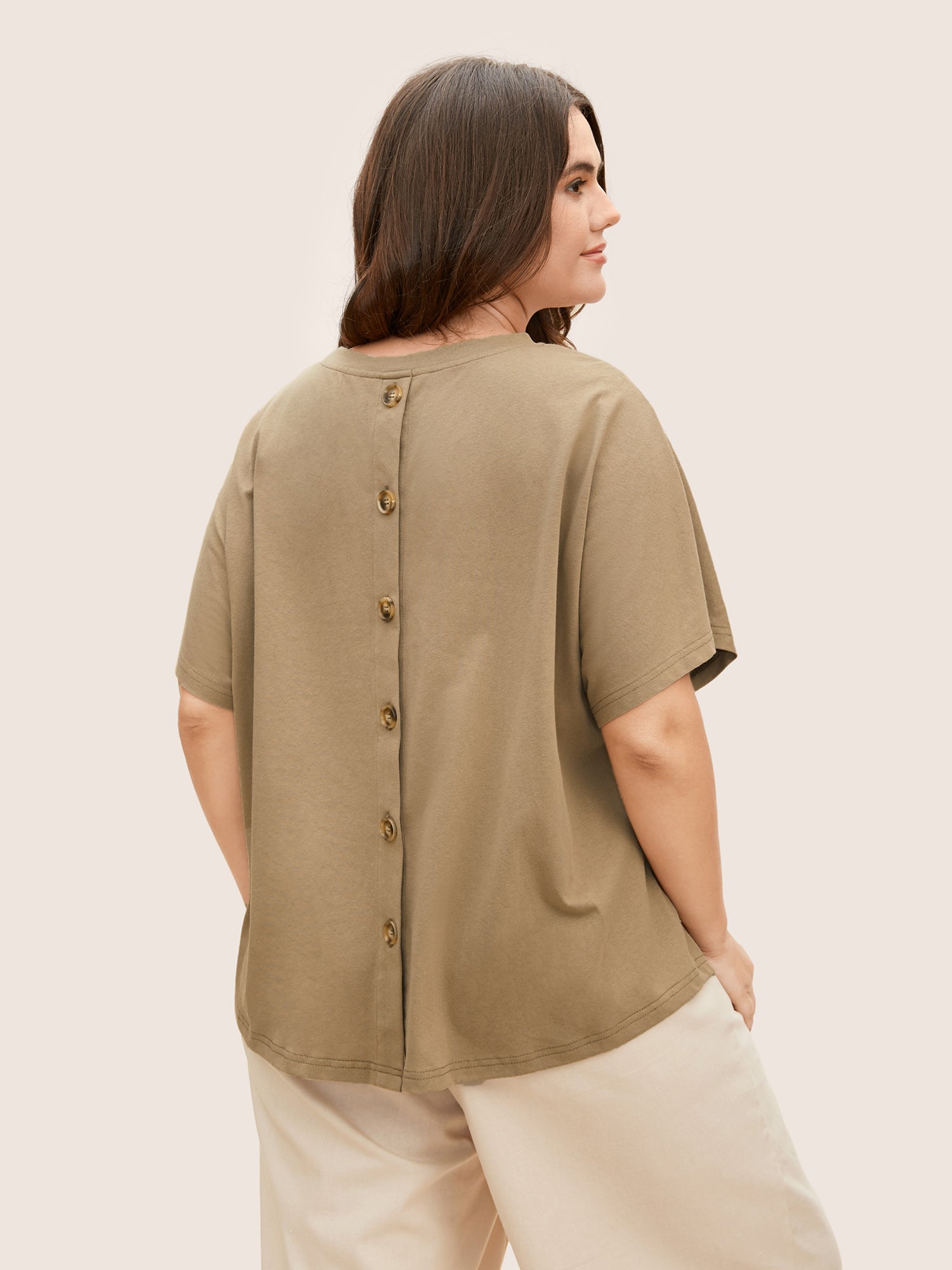 Cotton Back Button Detail Dolman Sleeve T-shirt