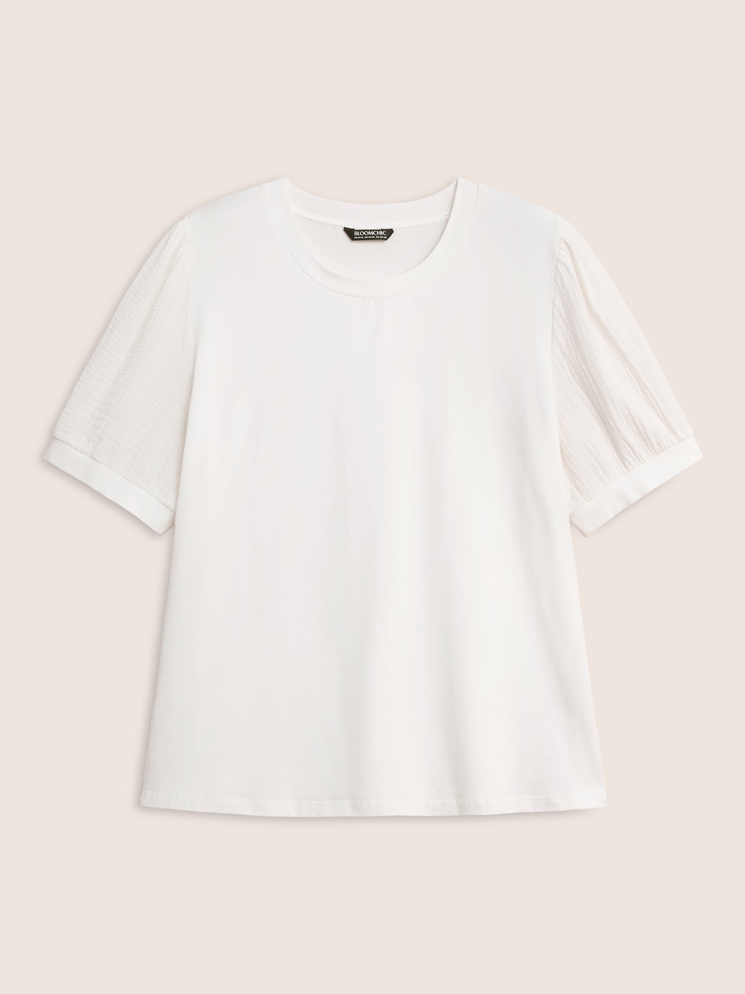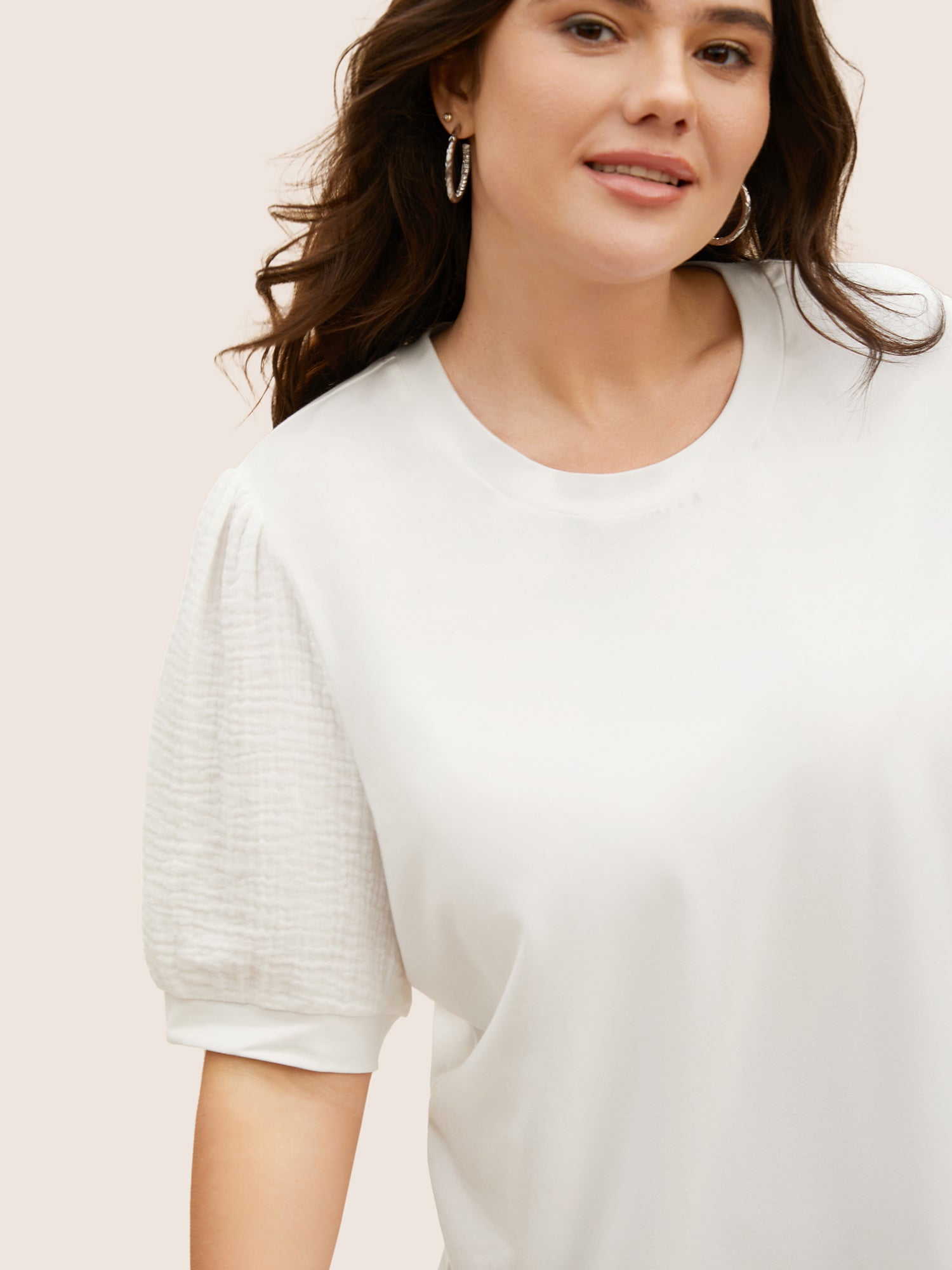 Plain Textured Patchwork Lantern Sleeve T-shirt